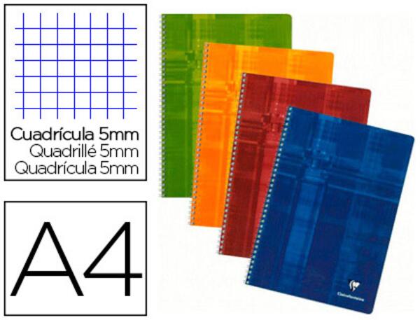 Cahier reliure intégrale. Papier vélin velouté 90 g/m². Couverture pelliculée lavable. Coloris aléatoires.