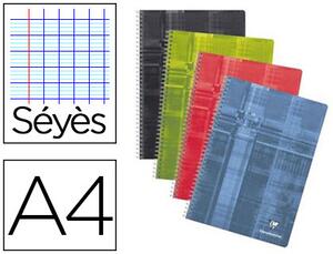 Cahier reliure intégrale. Papier vélin velouté 90 g/m². Couverture pelliculée lavable. Coloris aléatoires.