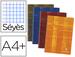 Cahier reliure intégrale. Papier vélin velouté 90 g/m². Couverture pelliculée lavable. Coloris aléatoires.