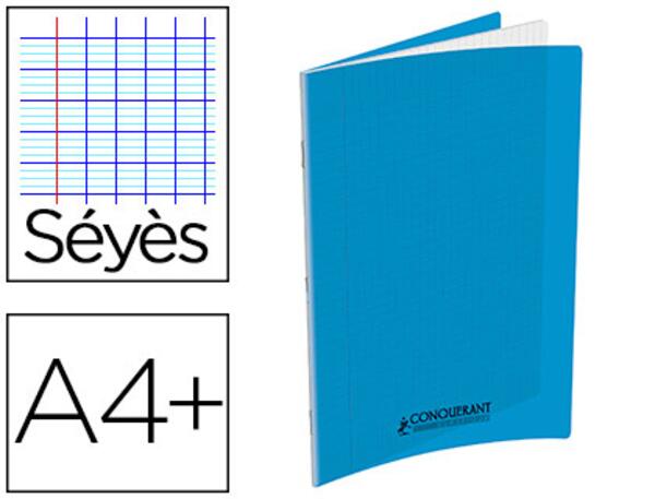 Cahier classique CONQUÉRANT. Couverture polypropylène très résistante aux manipulations. A4+ 24X32CM 140 pages. Réglure grands carreaux Seyès ou quadrillée 5x5. Papier 90 g très blanc. Couverture à la couleur.