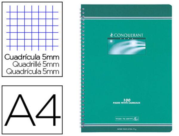 CAHIER CONQUÉRANT SEPT RELIURE INTÉGRALE COUVERTURE OFFSET A4 21X29,7CM 100 PAGES 70G 5X5MM