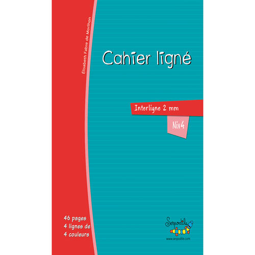 "La gamme Serpodile d'Oxford a été conçue avec l'objectif de fournir des aides de repérage dans l'espace lors de l'apprentissage de l'écriture pour aider les élèves atteints de troubles dys (dyslexie, dyspraxie et dysgraphie, autisme). La méthode Serpodile fournit des repères ludique dans la feuille mais aussi au niveau des lignes utilisées dans l'écriture cursive. Chaque page est construite avec un cadre et deslignes colorées. Interligne de 2mm. Ce cahier fournit des repères ludiques dans la feuillemais aussi au niveau des lignes utilisées dans l'écriture cursive. Ce cahier """vierge"""pourra être utilisé à l'école, pour les devoirs du soir ou encore en rééducation. Ilexiste 5 niveaux de cahiers avec des interlignes colorées de 2mm à 7mm"