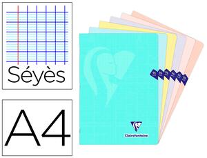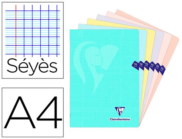 Cahier piqué avec couverture en polypropylène transparent, solide et protectrice. Plus besoin de protège-cahier. 7 couleurs pour 7 matières. Papier vélin velouté 90 g/m², extra blanc. Coloris aléatoires. Produit certifié PEFC.