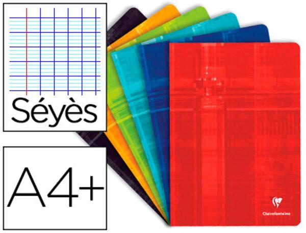 Cahier piqué, papier vélin velouté 90 g/m², extra blanc. Couverture pelliculée lavable. Coloris aléatoires.