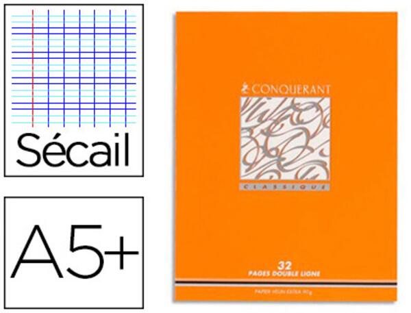 CAHIER CONQUERANT CLASSIQUE agrafe 170x220 mm 32 pages 90g assorti. Couverture 250g. Les cahiers Pichon sont en papier certifié NF environnement. Cette marque conjugue qualité et environnement : aptitude à l'usage, limitation des impacts environnementaux liés à l'impression et à la fabrication du papier et du produit. Un rapport qualité/prix exceptionnel.