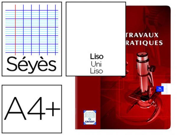 Cahier en papier vélin velouté 90 g/m², séyès et dessin extra blanc 125 g/m², couverture pelliculée lavable.