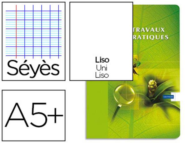 Cahier en papier vélin velouté 90 g/m², séyès et dessin extra blanc 125 g/m², couverture pelliculée lavable.