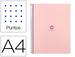 Couverture cartonnée de 1,5 mm. Papier de qualité ultra blanc et lisse pour une écriture douce et fluide qui ne traverse pas le papier. 160 pages de 90g/m2. Réglure dot. Microperforations et 4 trous pour incorporer dans un classeur. Spirale coil-lock de couleur. Dimensions : 210 x 297 mm.