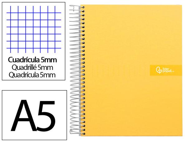 Couverture en carton contrecollé de 1,5 mm d'épaisseur, recouvert sur une face de papier couché mat avec détails en RELIEF 135g/m². Couverture inté rieure imprimée. Papier de 90 g/m² avec bandes de 5 couleurs. 240 pages. Microperforé. Spirale nylonisée de couleur. Coil-lock. Réglure 5 x 5.