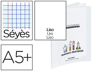 Cahier de travaux pratiques avec couverture en polypropylène transparent. Une page de papier 90 g/m² et une page de dessin 120 g/m².