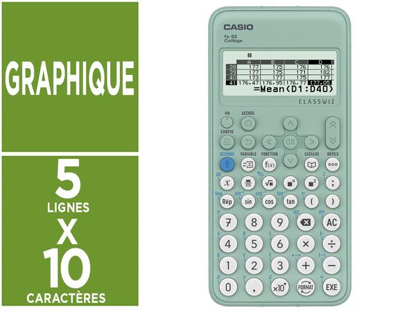 Conçue spécialement pour les élèves du collège, cette calculatrice scientifique Casio FX-92 Collège associe un large écran lisible à de nombreuses fonctions adaptées aux besoins scolaires. Son écran haute résolution de 5 lignes permet une visualisation claire des calculs, tandis que ses outils statistiques et tableaux de valeurs facilitent la compréhension des notions mathématiques. Compacte et légère, elle offre un équilibre idéal entre praticité et performance pour accompagner efficacement les élèves dans leurs apprentissages.