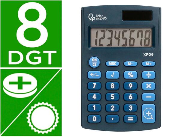 Calculatrice de poche à 8 chiffres. Compacte et très pratique. Touches en caoutchouc. Touches on/off, racine carrée, pourcentage, somme et soustraction de la mémoire. Dimensions : 98 x 62 x 8 mm. Fonctionne avec des piles LR1130 et l'énergie solaire. Coloris bleu.