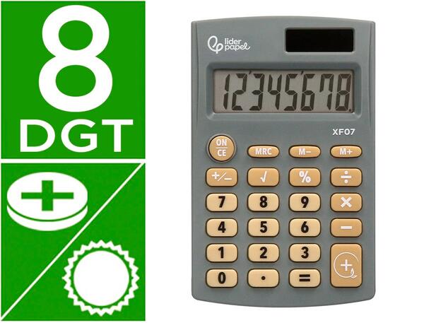Calculatrice de poche à 8 chiffres. Compacte et très pratique. Touches en caoutchouc. Touches on/off, racine carrée, pourcentage, somme et soustraction de la mémoire. Dimensions : 98 x 62 x 8 mm. Fonctionne avec des piles LR1130 et l'énergie solaire. Coloris gris.