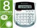 Affichage à cristaux, 8 chiffres. Écran incliné. Mémoire à 3 touches. Calcul de taxes, pourcentage, racine carrée. Alimentation solaire et à piles. Ergonomique. Dimensions : 140 x 121 x 26 mm. Poids : 110 g.