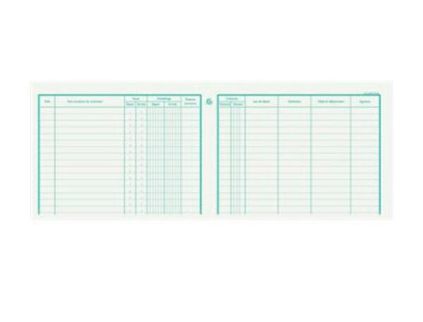 Carnet de bord pour consigner chaque déplacement, la date, l'identité du conducteur, l'heure de départ et d'arrivée, le kilométrage, les frais de carburant, ainsi que le lieu et l'objet du déplacement. Permet de noter 496 déplacements. Papier 110 g/m², teinté. 64 pages. 10 colonnes.