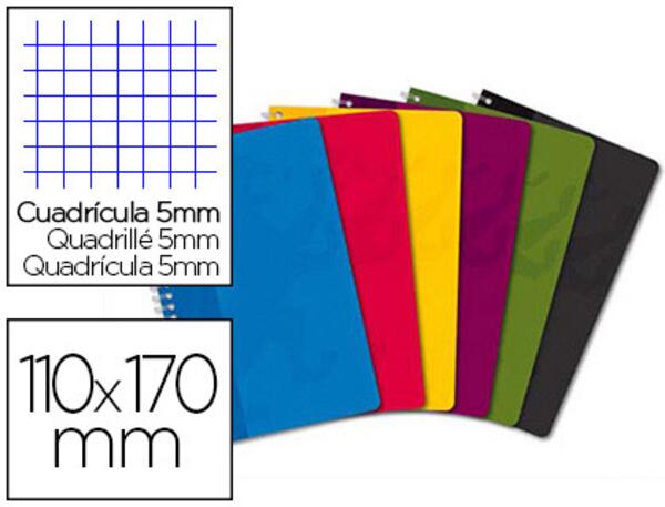 Papier 90 g/m² extra blanc, couverture pelliculée lavable souple. Coloris aléatoire. Réglure 5 x 5.