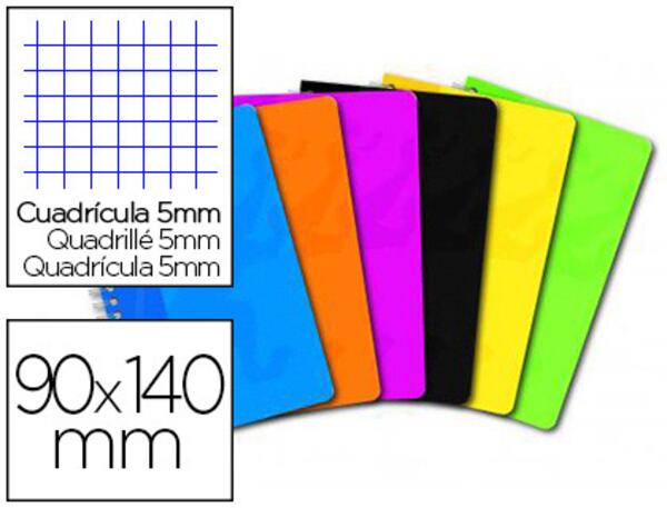 Papier 90 g/m² extra blanc, couverture pelliculée lavable souple. Coloris aléatoire. Réglure 5 x 5.
