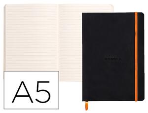 Carnet souple. Réglure lignée. Papier de 90 g/m². 160 pages de couleur ivoire. Fermeture avec élastique. Coloris noir. Dimensions : 148 x 210 mm.