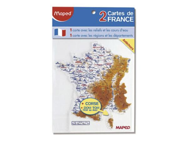France administrative, Corse, DOM-TOM, reliefs et cours d'eau. Hauteur : 18 cm.