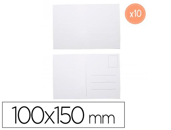Cartes postales en carton 250 g/m² à personnaliser. Coloris blanc. Dimensions : 100 x 150 mm. Lot de 10 cartes.