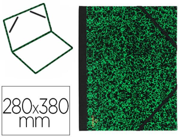 CARTON À DESSIN. Recouvert de papier marbré vert et dos Koveril noir. Fermeture élastique. Grammage : 90 g/m². 280 x 380' mm, 257 x 364 mm'.