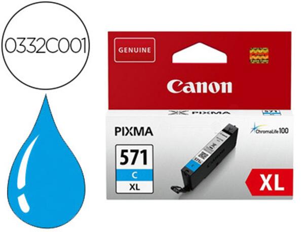 Profitez d'une qualité d'impression exceptionnelle avec la cartouche d'encre Canon 0332C001-CLI-571XLC haute capacité de couleur cyan. Idéale pour imprimer des documents et des photos avec des couleurs éclatantes, elle vous permet d'effectuer un nombre d'impressions 2 fois supérieur à celui des cartouches standard, grâce à sa capacité élevée.