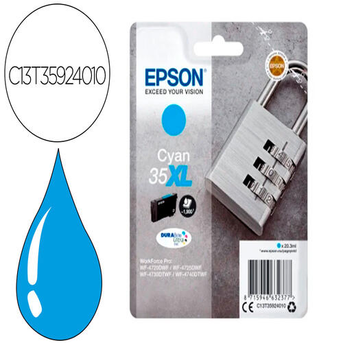 Réduisez vos coûts d'impression avec la cartouche d'encre Epson Singlepack 35XL DURABrite Ultra Ink Cyan. Profitez d'encres économiques avec un coût par page jusqu'à 50 % inférieur par rapport aux imprimantes laser concurrentes. Offrant un excellent rapport qualité/prix, ces cartouches séparées vous permettent de ne remplacer que la couleur utilisée. Avec une capacité d'impression allant jusqu'à 1 900 pages en couleur, cette cartouche est idéale pour les utilisateurs réguliers. L'encre pigmentaire DURABrite Ultra garantit des documents nets, durables, résistants au maculage, à l'eau et aux surligneurs. Optimisée pour les imprimantes Epson, elle assure des résultats parfaits à chaque impression.
