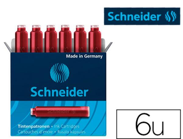 Cartouches d'encre fermées à l'aide d'une bille. Conviennent aux produits Schneider et à la plupart des stylos-plume et rollers à cartouche.