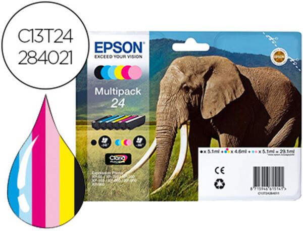 En résumé, la cartouche Epson Jet d'encre Éléphant 24 Claria Photo HD Multipack est la solution parfaite pour ceux qui recherchent des impressions photo de haute qualité, avec des couleurs vives et durables, spécialement conçues pour les imprimantes photo Epson compatibles.