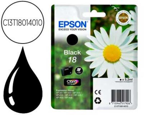 Découvrez la cartouche d'encre noire Epson T1801, un consommable essentiel pour votre imprimante à jet d'encre. Conçue pour offrir des impressions de haute qualité avec une précision des nuances, cette cartouche est idéale pour les utilisateurs recherchant efficacité et simplicité.