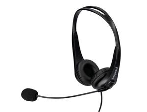 Casque binaural avec microphone réglable haute sensibilité et son surround. Contrôleur de volume, microphone et audio. Indiqué pour une communication mains libres, idéal pour ordinateur et portable. Connexion USB. Coussinets rembourrés pour un usage confortable et serre-tête réglable. Couleur noire. Câble de 2m de longueur.
