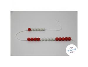 20 boules en 2 couleurs sur une ficelle extensible. Les boules rouges ou blanches, sont regroupées par 5 pour faciliter le comptage. Dim. (L x Ø) : 45 x 1,1 cm - L'unité