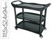 CHARIOT DE SERVICE en PLASTIQUE. En plastique Chariot multifonctionnel. 3 plateaux . 4 roues et 2 poignées pour un déplacement plus facile. Charge maximale par niveau : 35 kg. Dimensions : 1,1 m x 524 mm x 940 mm.