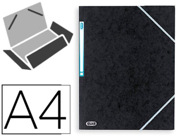 En carte lustrée 390 g/m². Effet relief triangle. 3 rabats. Fermeture par élastique. Etiquette au dos. Pour format A4. Dimensions : 245 x 320 mm. Produit certifié PEFC.