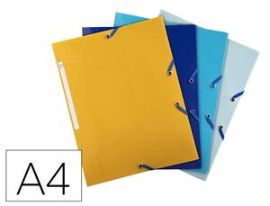 En polypropylène recyclé. 3 rabats, fermeture par élastiques. Étiquette d'identification au dos. Pour format A4. Coloris assortis : safran, turquoise, bleu marine ou bleu clair. Dimensions : 240 x 320 mm. Produit certifié Ange Bleu.