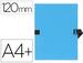 En carton fort recouvert de papier toilé de couleur. Sangle coton et boucle crantée. Dos extensible jusqu'à 120 mm. Dimensions : 240 x 320 mm. Produit certifié FSC.