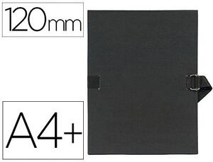 En carton fort recouvert de papier toilé de couleur. Sangle coton et boucle crantée. Dos extensible jusqu'à 120 mm. Dimensions : 240 x 320 mm. Produit certifié FSC.