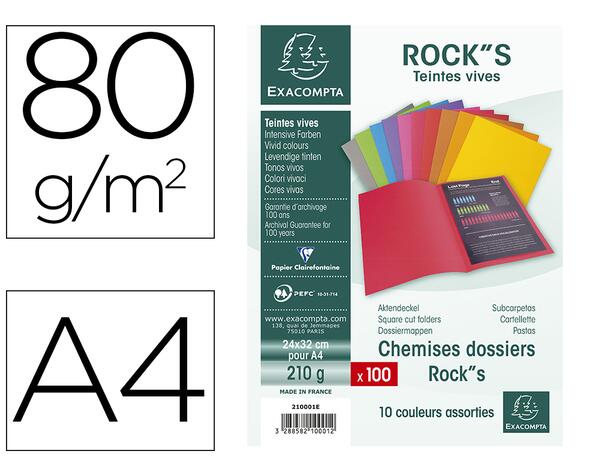 La chemise Exacompta Rock Bahia est une solution pratique et esthétique pour organiser et ranger vos documents. Fabriquée en carte rigide de 210 g/m², elle combine durabilité et respect de l'environnement grâce à son papier Clairefontaine certifié PEFC. Conçue pour contenir des documents de format A4, elle se distingue par ses coloris vifs et ses dimensions de 240 x 320 mm. Ce lot de 100 unités est parfait pour un usage intensif ou collectif.