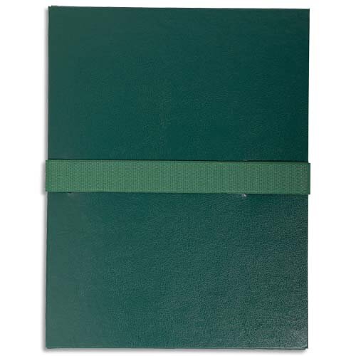 Couverture en balacron (vinyle). Fermeture par sangle à scratch à la couleur de la chemise. Dos rainuré extensible jusqu’à 13 cm. Avec rabat rainuré en pied. Coloris assortis : blanc, bleu clair, gris, bleu foncé, noir, rouge, vert clair, vert foncé, jaune, bordeaux.