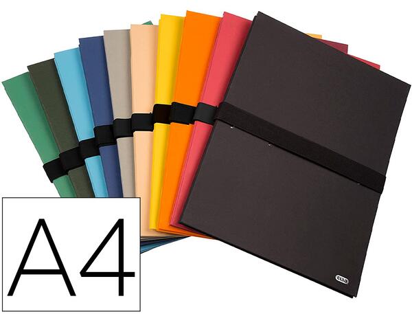 Chemise extensible avec sangle en carton fort 1 mm. Ouverture et fermeture avec un scratch pratique et rapide. Dos extensible jusqu'à 130 mm. Couverture toilée. Grande capacité : 1250 feuilles. Pour format A4. 10 coloris assortis. Dimensions : 240 x 320 mm.