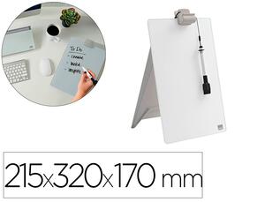 Chevalet en verre design élégant sans cadre avec une surface effaçable à sec. Excellent outil pour la prise de notes. Surface en verre trempé haute sécurité effaçable à sec offrant la plus haute résistance aux taches et rayures. Il vous suffit d'écrire un message et de l'effacer pour en écrire un autre. Fourni avec une pince à document pratique pour attacher des notes et un marqueur. Surface en verre garantie 25 ans. Dimensions : 215 x 320 x 170 mm.