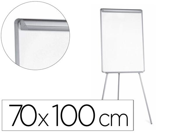 Tableau chevalet blanc avec cadre en aluminium. Avec 2 bras latéraux extensibles qui triplent la superficie disponible. Surface blanche mélaminée adaptée pour les marqueurs effaçables à sec. Pince ample permettant d'accueillir un bloc de conférence. Pieds télescopiques avec hauteur réglable. Auget porte-marqueurs. Compatible avec le bloc de conférence 96476. Dimensions du tableau : 70 x 100 cm. Hauteur : 215 cm.