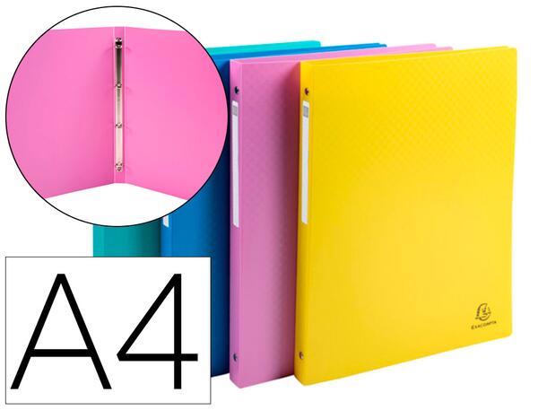 Classeur 4 anneaux en polypropylène pour une belle rigidité, résistance et durabilité. Il s'adapte à tout type de documents. Étiquette de dos pour identifier le contenu. Pour format A4+. 4 coloris assortis : bleu, turquoise, jaune, fuchsia.