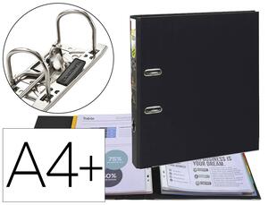 En polypropylène, le classeur est équipé d'une mécanique plus forte, résistante et ergonomique grâce à sa nouvelle poussée. Mécanisme 2 anneaux très robuste. Mécanisme d'ouverture à 180º. Bouton-poussoir. Dos de 80 mm et de 50 mm. Porte-étiquette soudé, étiquette utilisable recto verso. Oeillet de maintien et de préhension. Pour format A4+. Dimensions : 300 x 320 mm. Produit certifié FSC.