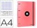 Épaisseur 1,5 mm. Fermeture à élastique. Encoches pour les 4 anneaux ronds. Dos de 40 mm. 100 feuillets mobiles quadrillés 5x5 avec bandes de 5 couleurs différentes, en papier extra blanc de 100 g/m² ultra doux. Couverture intérieure imprimée. Pour format A4. Dimensions : 268 x 333 mm.