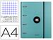 Épaisseur 1,5 mm. Fermeture à élastique. Encoches pour les 4 anneaux ronds. Dos de 40 mm. 100 feuillets mobiles quadrillés 5x5 avec bandes de 5 couleurs différentes, en papier extra blanc de 100 g/m² ultra doux. Couverture intérieure imprimée. Pour format A4. Dimensions : 268 x 333 mm.