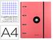 Épaisseur 1,5 mm. Fermeture à élastique. Encoches pour les 4 anneaux ronds. Dos de 40 mm. 100 feuillets mobiles quadrillés 5x5 avec bandes de 5 couleurs différentes, en papier extra blanc de 100 g/m² ultra doux. Couverture intérieure imprimée. Pour format A4. Dimensions : 268 x 333 mm.