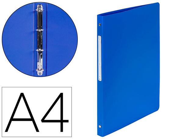 Épaisseur 5/10ème. 4 anneaux ronds de 15 mm de diamètre. Avec étiquette. Dos de 20 mm. Capacité de 100 feuilles. Pour format A4. Dimensions: 250 x 320 mm. Coloris: Bleu.