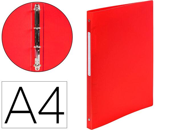 Épaisseur 5/10ème. 4 anneaux ronds de 15 mm de diamètre. Avec étiquette. Dos de 20 mm. Capacité de 100 feuilles. Pour format A4. Dimensions: 250 x 320 mm. Coloris: Rouge.