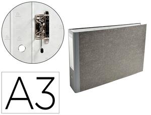 Couverture papier marbré. Garde et étiquette imprimées. Oeillet de maintien et de préhension. Coins métalliques et renforts. Mécanisme plus robuste. Dos de 70 mm. Coloris gris. Produit certifié FSC.